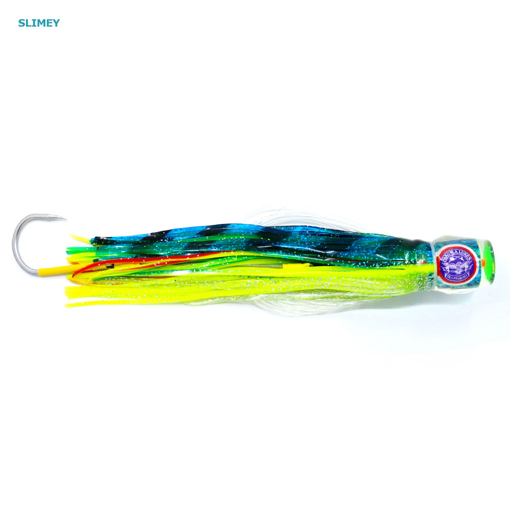 The Pakula Paua Hothead Rat Game Lure is the short rigger and short corner lure. The action is aggressive with a wide head shake and great splash when it breathes. It will hug the water at all trolling speeds and will work fine in all weather conditions, including very rough conditions.
